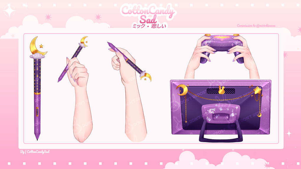 Expressão extra: 15,00Assets: 30,00/150,00 (Essa é a média de preço e pode variar de acordo com a dificuldade. Eu faço cadeiras, microfones, pelúcias, controles, mãozinhas, casacos, chapéus, cenários, etc. Eles podem ser para riggar ou apenas o png. Caso tenha dúvida basta me perguntar nas redes sociais <3)